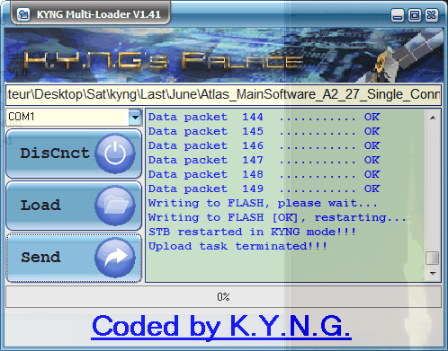 Posté(e) le 7 avril 20178 a Auteur Ok,pour la Port rs232 du Pc c'est tout bon..driver installer (carte PCI-rs232)...cool quand j'ouvre le logiciel KYNG HD MultiLoader V1.01et j'envoie bien le ficher... Mais rien ne se passe pour le Atlas hd200 ??? toujours la Led Rouge :shock: j'ai bien vérifié mon Cable rs232(db9) c tout bon!!.. :computerrage_40_anim_gif: