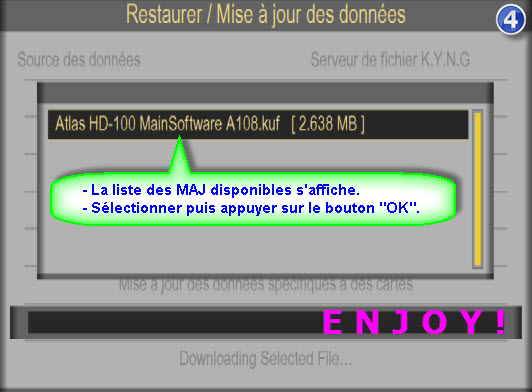 Posté(e) le 15 août 201213 a salam, Accéder au Serveur de Fichiers Kyng sur l’Atlas HD100 accéder au Serveur de Fichiers Kyng sur l’Atlas HD100 à partir de la version A1.08. Pour cela, il faut s’assurer que votre démo est bien connecté à internet.