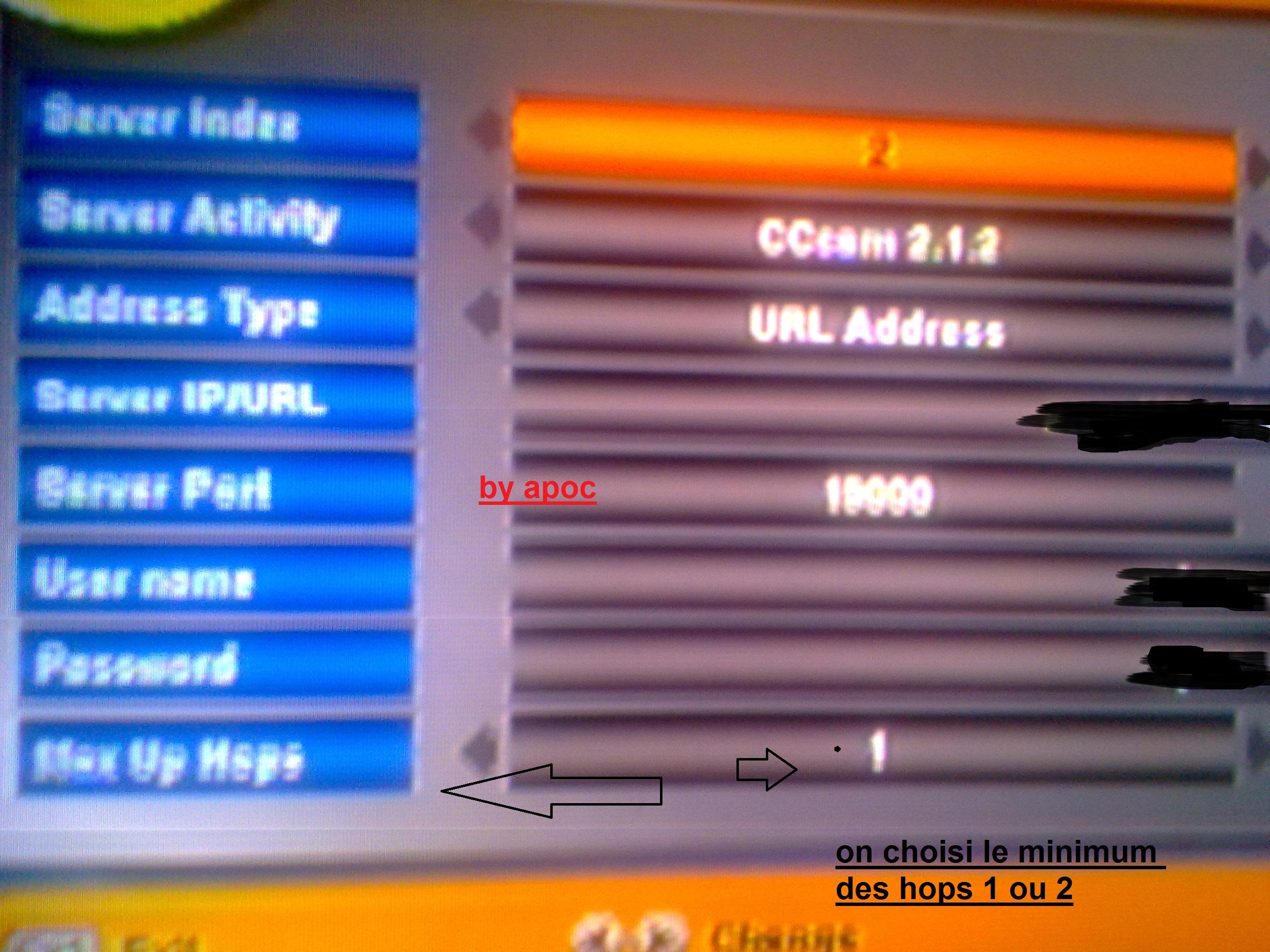 Posté(e) le 15 septembre 201213 a configuration Hops sur le ATLAS-E bonjour a tous PS : pour que ça fonctionne il faut au moins utilise la version A 2.20 1 : menu => configuration systeme => Ethernet => touche OK sur la telecommande. 2 : la touche BLEU de la telecommande 3 : on va sur MAX UP HOPS et on choisi 1 ou 2 ou 3....selon votre choix si vous avez un serveur avec beaucoup de cartes et plusieurs niveau des HOPS vous pouvez le reduire et utilise le serveur comme vous souhaitez