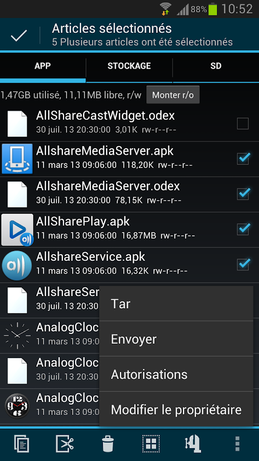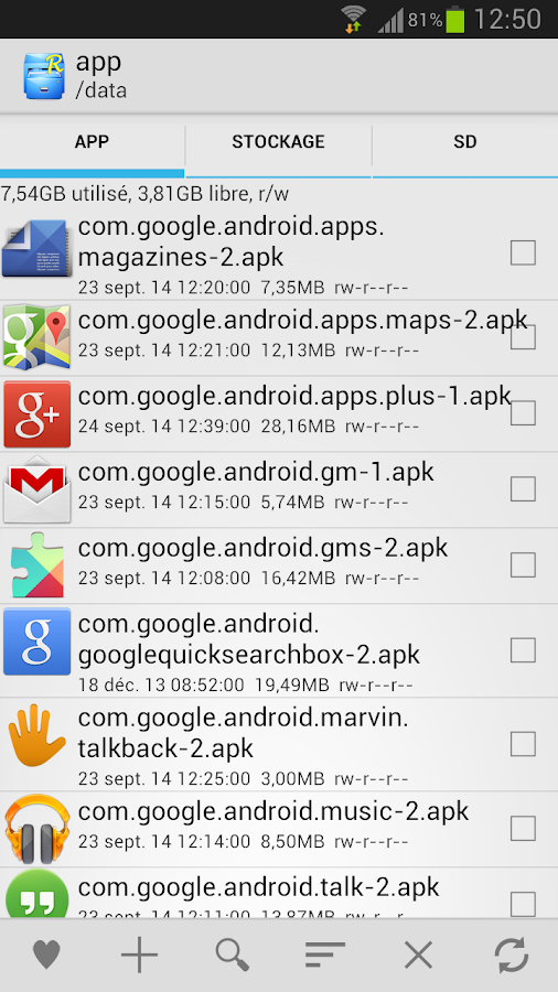 Posté(e) le 16 mai 20169 a Vous profitez de la mémoire de plus en plus généreuse au sein des smartphones, et du retour du port microSD chez les appareils haut de gamme tels que les derniers Samsung Galaxy Sx, pour stocker de nombreux contenus au sein de votre appareil ? Votre mobile est rooté, ou vous utilisez des services de cloud ? Il existe de nombreuses applications pour organiser tout cela. Voici une sélection de gestionnaires de fichiers pour terminaux Android. ES Explorateur de Fichiers 1 2 3 4 5 6 7 8 Previous Next C’est certainement l’application la plus célèbre dans sa catégorie, mais aussi la plus complète. Dotée d’un design moderne, ce qui n’est pas une évidence dans le domaine peu glamour des explorateurs/gestionnaires de fichiers, ES Explorateur de Fichiers a le mérite d’être facile à prendre en main, mais aussi complet. Cet outil permet d’organiser ses fichiers en les copiant, collant, réalisant des sélections groupées, en les supprimant… bref en faisant à peu près tout ce que l’on fait sur un ordinateur de bureau. L’application permet également de gérer les applications installées sur le téléphone, de décompresser des fichiers ZIP (un outil pratique), et supporte la majorité des applications de stockage en cloud pour le partage de contenus (Dropbox, OneDrive…). Bref, un outil de référence, gratuit qui plus est, mais qui en revanche a tendance à ajouter un peu trop d’outils superflus à son service, et qui pourra en agacer plus d’un. Pour avoir la paix et vous débarrasser des affichages publicitaires, une version pro facturée 2,99 euros est également disponible sur le Play Store. ES Explorateur de Fichiers ES Global ES File Explorer est une application gratuite tout-en-un incluant un gestionnaire de fichiers & d'applications & de tâches, le support des... Gratuit ES File Explorer/Manager PRO ES Global Traduire la description en Français à l'aide de Google Traduction ? Remettre la description dans sa langue d'origine (Anglais) Traduire ... 2,99 € Solid Explorer 1 2 3 4 5 6 7 8 Previous Next Autre poids lourd du secteur, Solid Explorer fait partie des explorateurs les plus connus sur le Play Store. Il a cependant bien évolué depuis ses débuts, et continue à bénéficier de mises à jour régulières. Il est ainsi passé à Material Design et comporte la plupart des fonctionnalités d’ES Explorateur de Fichiers, support des ZIP compris. Petit plus, il se comporte également comme un gestionnaire de root, pratique pour les amateurs de personnalisation. La plupart des services de cloud sont également pris en charge, afin de gérer les fichiers qui y sont stockés. Notez que si Solid Explorer est gratuit, il ne l’est que durant une période d’essai de 14 jours. Il faut ensuite s’acquitter de 1,99 euro en achat in-app pour continuer à l’utiliser sans pub. Un plugin à télécharger sur le Play Store lui offre en outre une compatibilité avec le Chromecast. Amaze File Manager 1 2 3 4 5 Previous Next Un peu moins connu, un peu moins bien suivi par ses développeurs aussi, Amazon File Manager respecte le Material Design et vise les mobinautes à la recherche d’une application légère, et open-source, qui plus est. Ses fonctionnalités sont classiques, elle est compatible avec le root, et ne comprend pas de publicité. Elle n’est toutefois pas un gestionnaire d’applications ni de fichiers stockés en cloud, et rencontre des difficultés dans les interactions avec les cartes mémoire microSD. Amaze File Manager Team Amaze Traduire la description en Français à l'aide de Google Traduction ? Remettre la description dans sa langue d'origine (Anglais) Traduire ... Gratuit FX File Explorer 1 2 3 4 5 Previous Next Rares sont les explorateurs de fichiers de la première heure à s’être modernisés, avec un style Material Design et un logo dans l’air du temps. Côté fonctionnalité, il reprend les classiques, avec la connexion auprès des services de cloud, la création de fichiers ZIP chiffrés, de playlists, un éditeur de texte et pas mal de fonctionnalités bien trouvées. Bon point également, la possibilité d’appairer deux smartphones en WiFi Direct ou en NFC pour partager des fichiers. Un add-on dédié aux terminaux rootés est disponible en marge de l’application principale. File Explorer NextApp, Inc. Traduire la description en Français à l'aide de Google Traduction ? Remettre la description dans sa langue d'origine (Anglais) Traduire ... Gratuit File Explorer (Root Add-On) NextApp, Inc. Traduire la description en Français à l'aide de Google Traduction ? Remettre la description dans sa langue d'origine (Anglais) Traduire ... Gratuit Gestionnaire de Fichiers 1 2 3 4 Previous Next Si l’on télécharge cette application, ce sera uniquement pour ses fonctionnalités, et pas pour le soin apporté à son design. Référence en termes de gestion de fichiers, l’application au style daté a le mérite d’être complète, avec des fonction copier/couper/coller pratiques, un affichage sous forme de grille ou de listes, la compatibilité avec les ZIP et avec les appareils rootés. Bonne nouvelle également, Gestionnaire de fichiers inclut un éditeur de texte, ce qui n’est pas le cas de toutes les apps concurrentes. Gestionnaire de Fichiers Cheetah Mobile Gestionnaire de fichiers complet pour Android, interface fraiche et des fonctions conviviales!Comprend:* 3 packs d'icônes commerciaux pour... Gratuit Root Explorer 1 2 3 4 Previous Next Même combat, dans une apparence différente mais tout aussi peu enthousiasmante, pour Root Explorer. Ce dernier est dédié aux utilisateurs d’appareils rootés, pour un accès aux fichiers cachés notamment. À moins d’être équipé de la Developer Preview d’Android N avec laquelle l’application est compatible, pas sûr que cette option soit la plus pertinente. D’autant que l’application est payante : comptez 3,79 euros. Root Explorer Spee